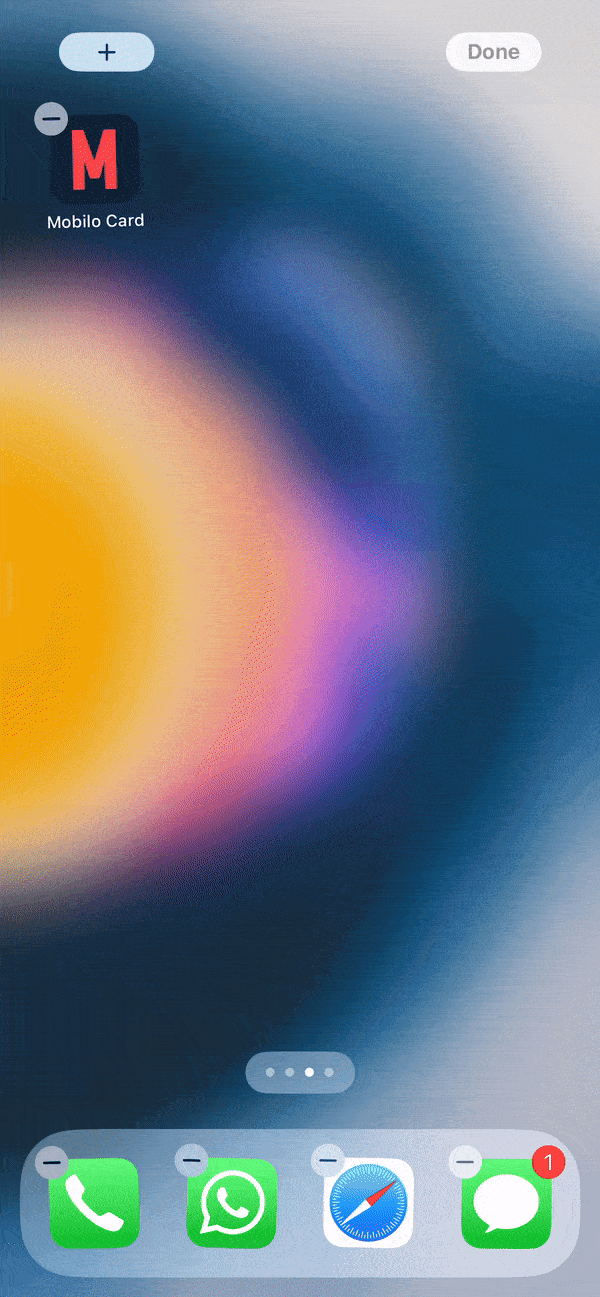 Long press on your home screen, select the plus icon at the top right for iPhones, look for Mobilo Card, and select the view you want to get (just the QR or the QR with some of your information). Please bear in mind that for this to work, you must have the app downloaded and logged into your account.
