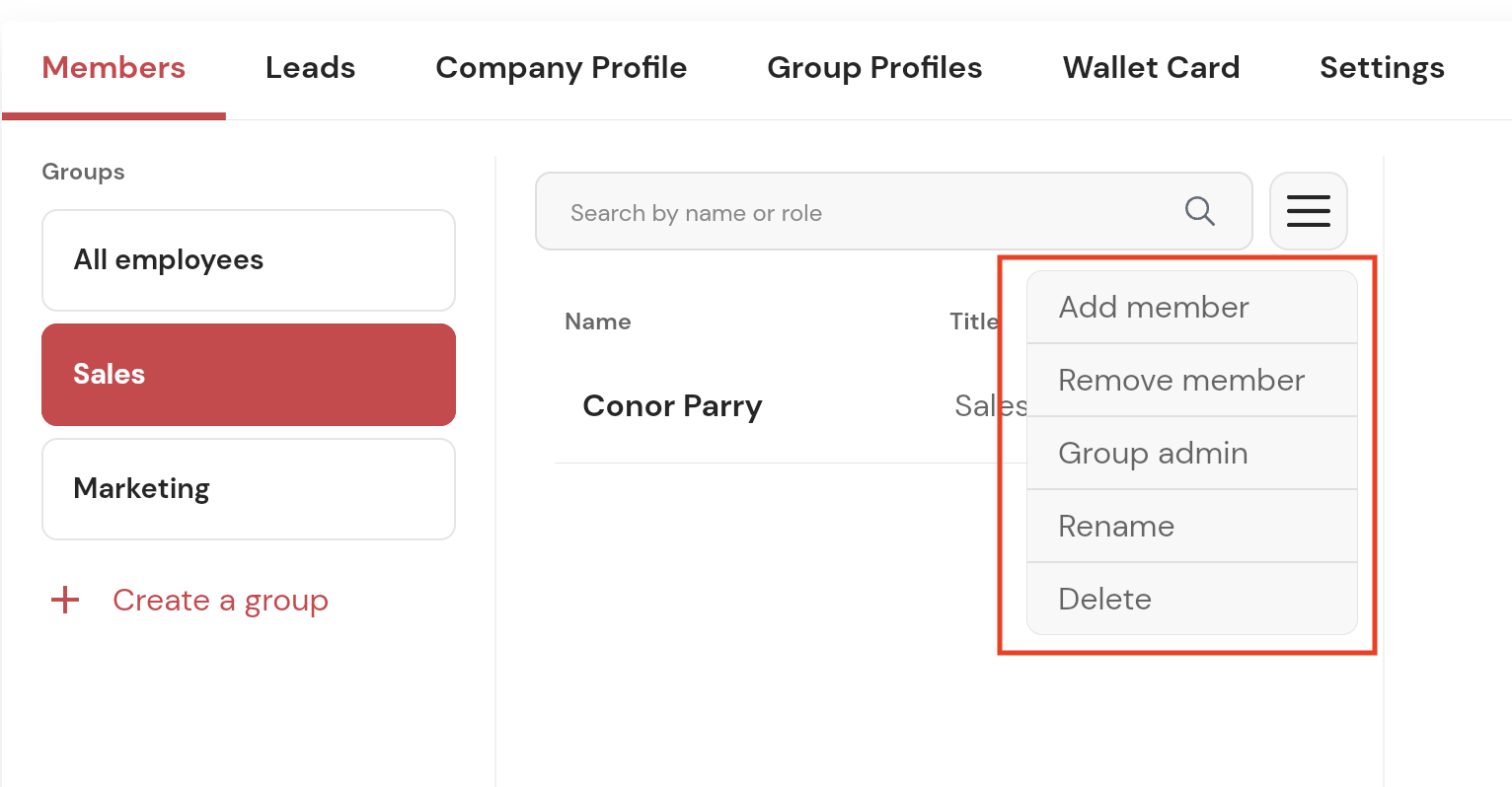 Pro tip: Set up different Profiles under the Group Profile tab in your admin panel. This feature allows you to add a unique company name, website, address, logo, and social media links per group.