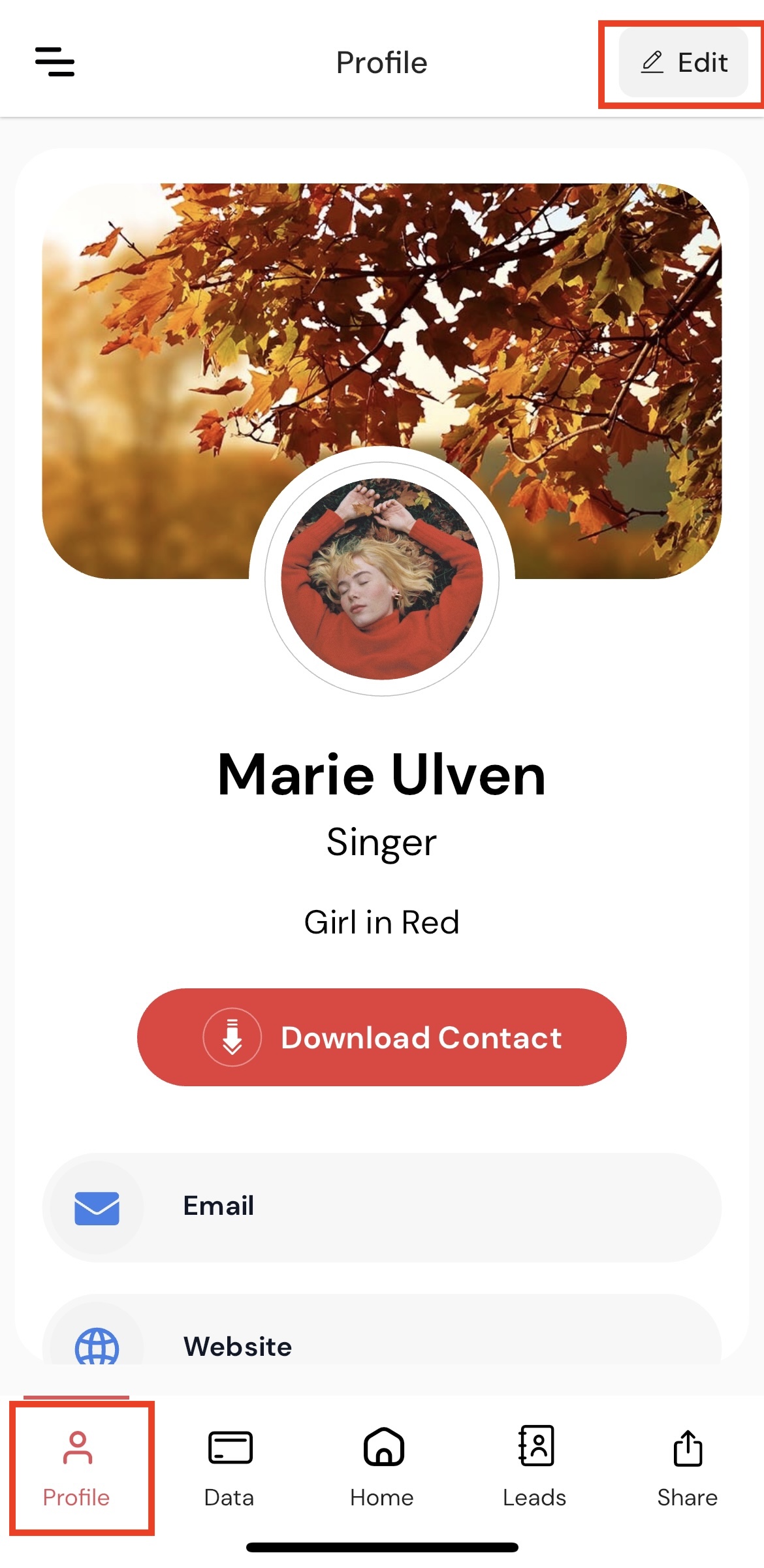 Tap on 'Profile' and then on 'Edit'. You'll be able to fill out the Socials section and all the information you would like to share with others.